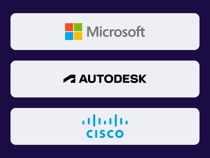 Готовим студентов Академии к прохождению профессиональной сертификации Cisco, Microsoft, Autodesk по профилю обучения. Следим за актуальными требованиями экзаменов, чтобы выпускники могли подтвердить свою квалификацию на международном уровне.от12 506 ₽в месяц